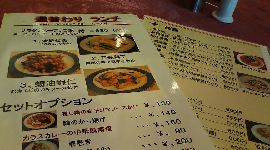 陳民のランチメニューです。むきエビのカキソース炒めとラーメン(小)を注文しました。 ![]() スープもメインのむきエビのカキソース炒めも美味しかったです。 ![]() アップ画像です。値段が安いにもかかわらずプリプリのエビが沢山入っています。 ![]() オプションで頼んだラーメンの小(200円)です。麺がやや伸びた感じだったのが残念。 ![]() コーヒーかデザートを選べるのですが、私はデザートの杏仁豆腐を選びました。段取りを間違 えたのか、全てを食べ終わった後にサラダが出てきましたので、撮影が出来ませんでした。 ![]() |