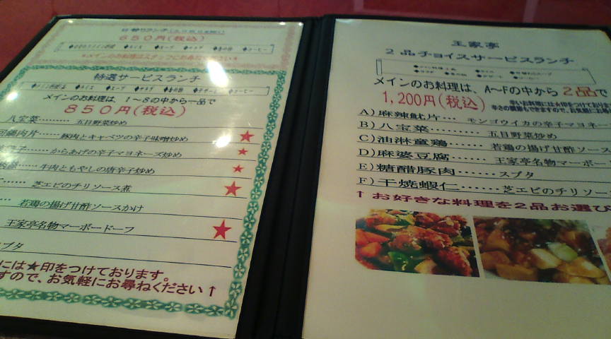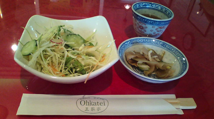 王家亭のメニューです。メイン料理1品だと850円、2品だと1200円です。 ![]() 程なく運ばれてきたサラダとザーサイ。 ![]() 海老チリと酢豚を注文しましたが、酢豚の肉の脂がやや多かったのが気になりました。 ![]() ライスとスープです。 ![]() デザートとコーヒー。料理は全体的に悪くはないのですが、何かパンチが欠けていました。 ![]() |
