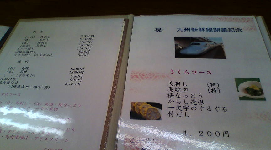 | ●熊本の美味しいお店 最高は 馬刺し・焼肉の店らむ 熊本市花畑町13-23 花畑ビル1F 096-322-9500 (月〜木)17〜22:30、(金・土)17〜23 行こう行こうと思っていた馬刺し・焼肉の「らむ」にようやく行くことが出来ました。高いと思っていたのですが、思っていたほどではありませんでした。店内には沢山のお客さんがいましたが、やはりそれに値する馬肉を提供していました。店員さんの対応も良かったです。 |