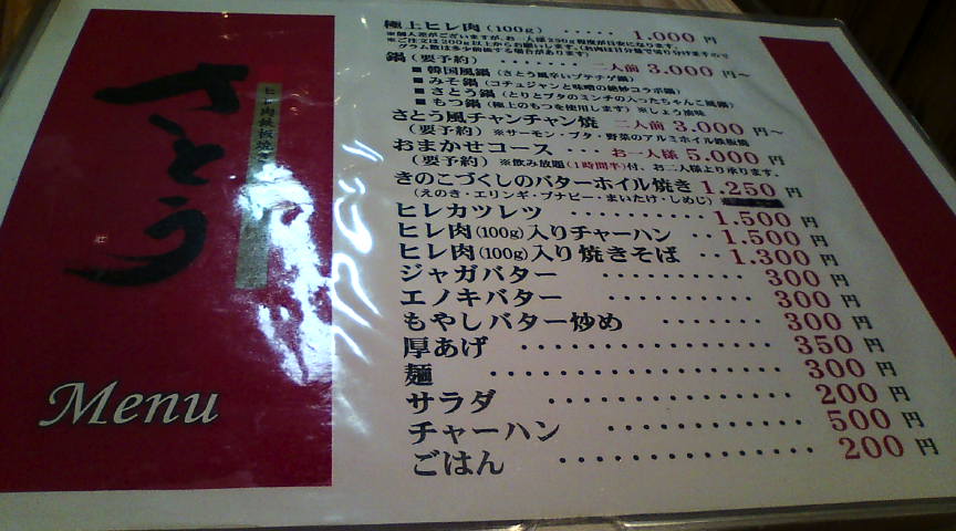 | ●熊本の美味しいお店 最高は ヒレ肉鉄板焼きさとう 熊本市安政町6-2 パンプキンビル3F 096-354-5553 12〜last(不定休) お肉は宮崎産か鹿児島産を基本にしており、ヒレ肉が100グラム1000円という信じられない値段で食べられます。「この値段でよく出せますね」と聞いてみたところ「お肉屋さんからよく叱られますとおっしゃっていました。このお店本当に凄いです。 |