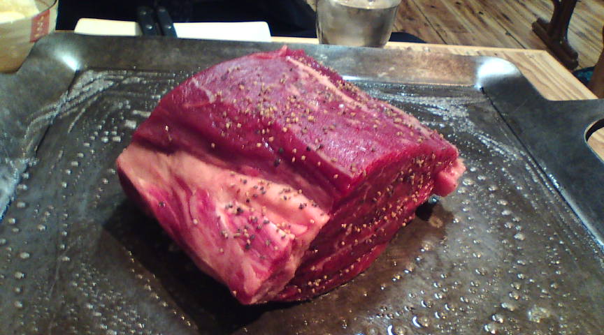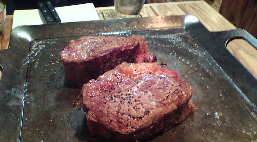 さとうのメニューです。極上ヒレ肉500グラムを注文しました。100グラム僅か1000円です。 ![]() お店の人から「正確に切れないので…」ということで550グラムのブロックが目の前にドンと出てきました。 ![]() 2名で行きましたので、お店の人が半分に切り分けてくれました。あとは自分で焼きます。 ![]() 肉に火が通って来ました。ものすごく美味しそうな匂いがします。早く食べたい!! ![]() 肉を細かく切り分けて焼いて行きます。正真正銘和牛のヒレ肉です。 ![]() さとうのごはん。肉は極上と表示されていますが、1000円としては極上と言って良いでしょう。 ![]() |