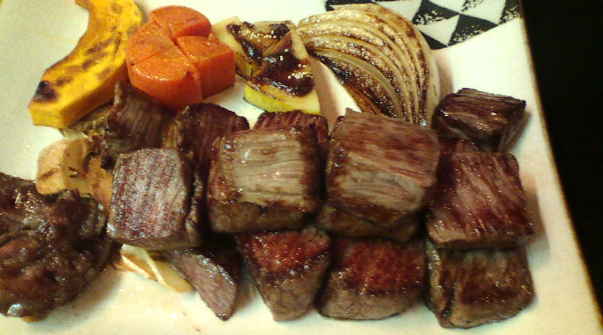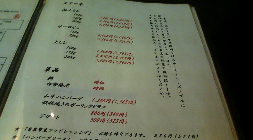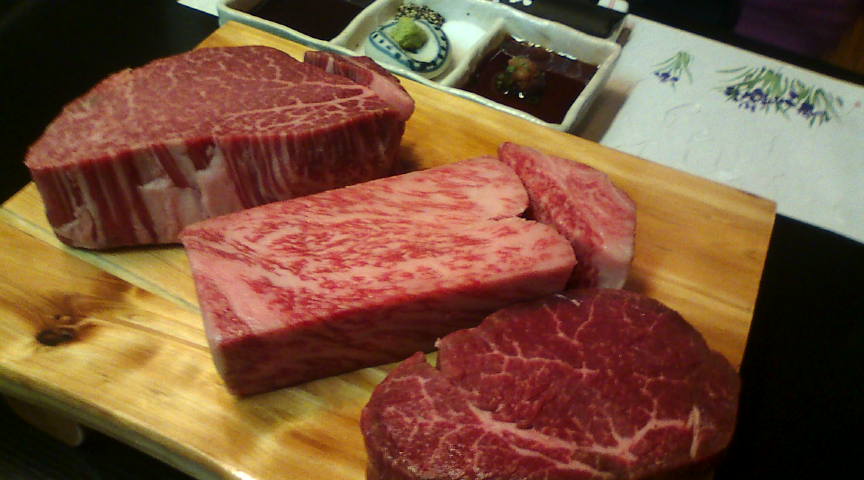 | ●熊本の美味しいお店 最高は ステーキハウス淀川 熊本市上通町11-18-2F 096-359-2914 ランチ11:30〜15:00(14:00 OS)、ディナー17:30〜22:30(21:30 OS) このお店の特徴は、「美味しいのに安い」ということです。お勧めはランチタイムのヒレステーキセット(1680円)で、130グラムのお肉が食べられます。昼のメニューは国産牛かどうかは分かりませんが、どちらか分からないくらい美味しい肉でした。 家族が来た際にちょっと奮発して、高いメニューを頼んでみました。久々に“本当に美味しい牛肉”を食べることが出来ました。 |