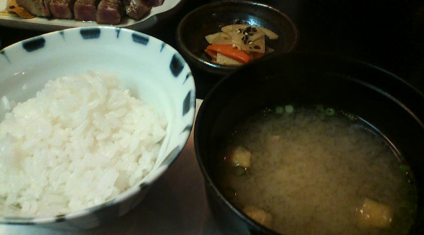 私が極上ヒレ200g、妻がサーロイン150g、子供達が上ヒレ100gと和牛ハンバーグを頼みました。 ![]() 肉を焼く前に見せてくれました。上から極上ヒレ、サーロイン、上ヒレです。 ![]() 和牛ハンバーグです。ピンボケになってしまいましたが、美味しかったと言っていました。 ![]() 単品で頼みましたので、全員ライスをセットしました。何気で小鉢のタケノコが美味しかったです。 ![]() 続いて上ヒレ100g(1900円)です。本来これで十分な味です。 ![]() さらにサーロイン150g(4800円)。肉の旨みが出てとても美味しかったです。 ![]() 私が頼んだ極上ヒレ200g(6400円)です。まさに至福の時、目茶目茶美味しいかったです。 ヒレなのにパサっとした感じは全く無く、超ジューシー。これだけの肉ならこの値段は安いです。 ![]() |