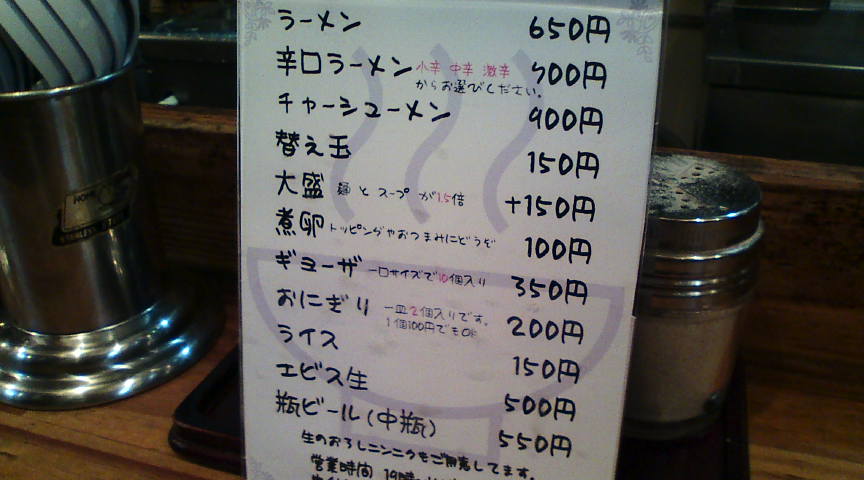 天外天のメニューです。お腹がいっぱいだったのでノーマルに「ラーメン」(650円)を注文しました。 ![]() ニンニクのかかり方が凄いです。でもスープはあっさりで美味しいラーメンでした。 ![]() 麺が姿を現しました。トッピングに煮卵を入れたら良かったと反省しました。 ![]() |