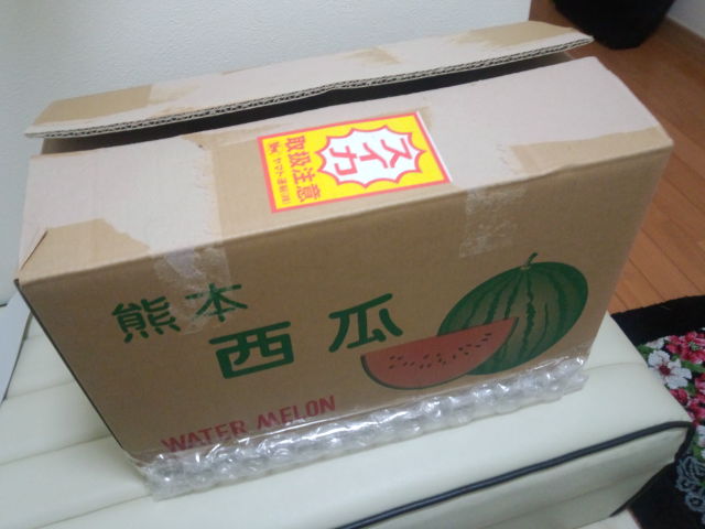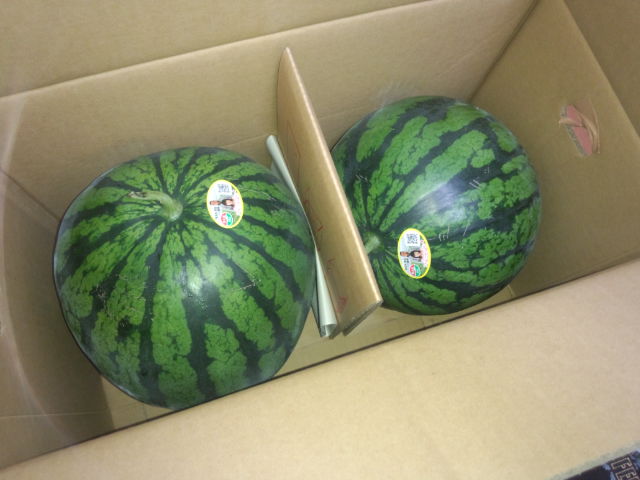 こんな感じで送られて来ました。果物だけに丁寧に梱包してあります。 ![]() 結構大きな玉です。冷やして食べたいと思います。 ![]() |