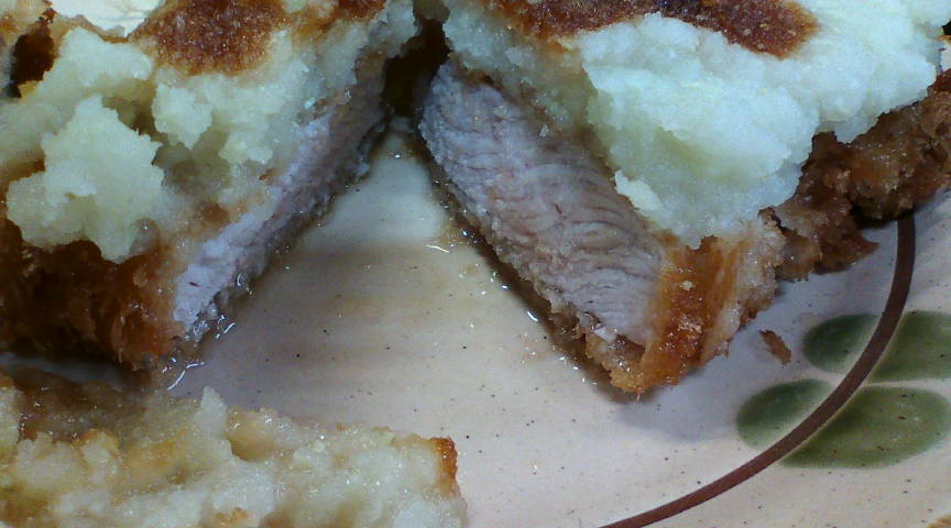 かつ庵のメニューです。どれも比較的リーゾナブルな価格設定になっています。 ![]() かつ庵名物のとんわさ定食(960円)です。ワサビを和えた大根おろしがたっぷり乗っています。 ![]() お薦めの理由はコレです。960円という値段で、この分厚いロース肉は素晴らしい! ![]() 別の日に食べたチーズ巻定食(1200円)。ヒレ肉とチーズの味が口の中で広がります。 ![]() チーズ巻定食の拡大画像。ヒレなので簡単に噛み切れます。 ![]() |