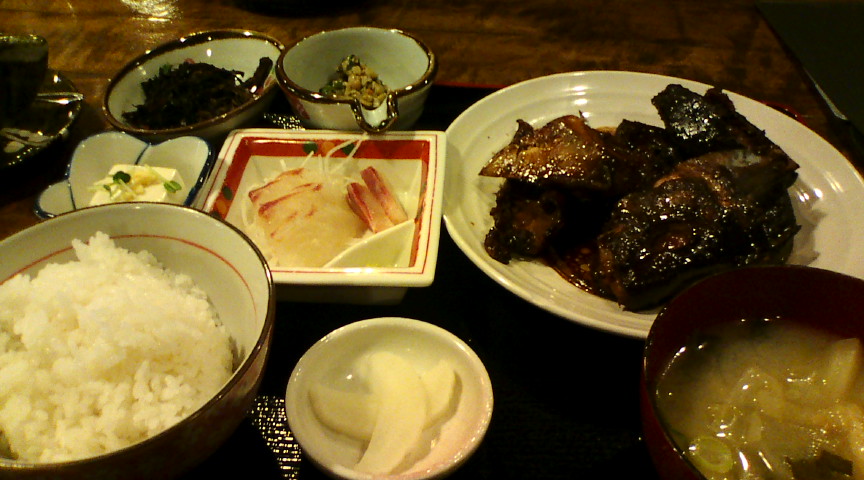| ●熊本市北部の美味しいお店 最高は 武膳(居酒屋・定食) お昼のランチをたまに食べに行きますが、日替わりをはじめとして沢山のメニューがあります。味は比較的ノーマルといった感じで、店の雰囲気も悪くはありません。ただ駐車場の構造上いつも混乱するのがちょっと辛いところです。 下の画像は、武膳の日替わり定食。コーヒー付きです。 |