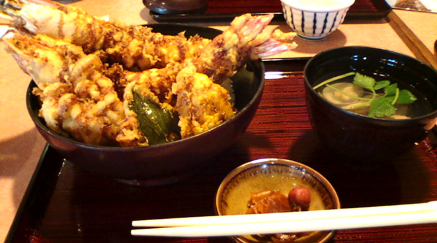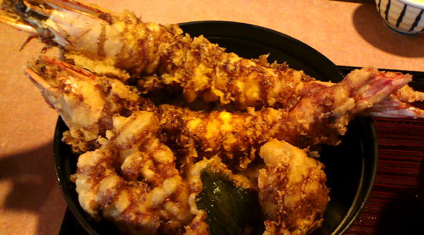 この掲示が気になって、BIGり天丼(1500円)を頼んでしまいました。 ![]() 程なく運ばれてきたBIGり天丼。丼にはとても大きなエビが2尾乗っていました。 ![]() 拡大画像です。エビは頭の方まで身がぎっしり詰まっていました。食べ応えがあります。 ![]() |