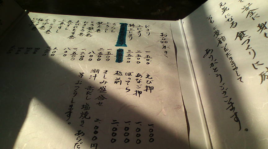 園鮨のメニューです。初めてのお店でしたので、取り敢えずにぎり(1500円)を注文しました。 ![]() すべて煮切りが塗ってあります。値段を考えるとかなりお薦めと言えるでしょう。汁物も付いています。 ![]() |