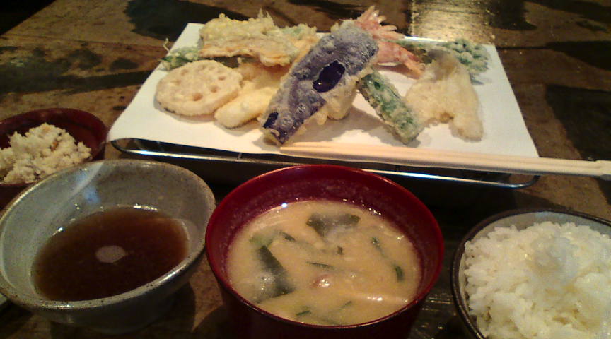 天重(てんしげ)の夜のメニューです。この日は初めてということもあり、天ぷら定食1500円を注文。 ![]() 運ばれてきた天ぷら定食。薄い衣にぷりぷりの海老が私の好みでした。 ![]() 天ぷらのアップ。これだけの品数で1500円は安いと思います。 ![]() |