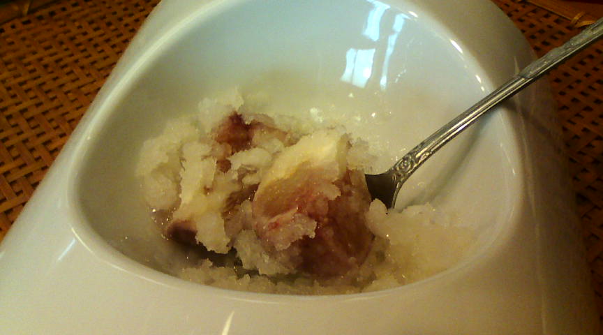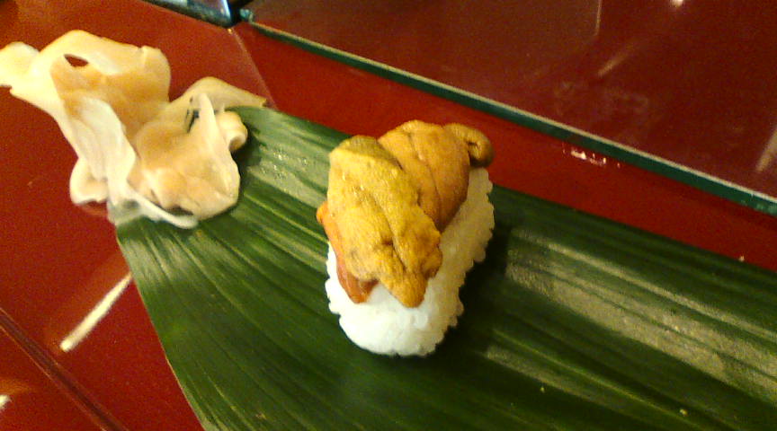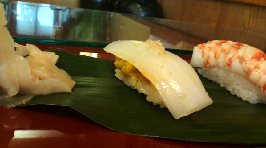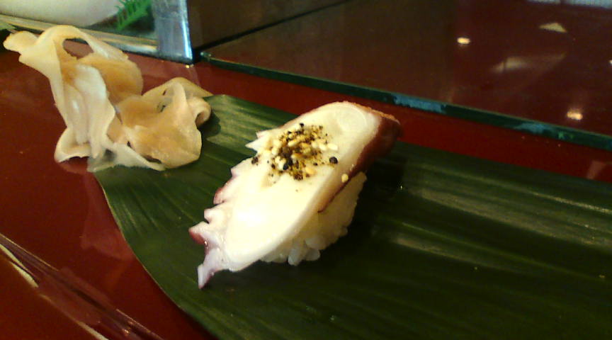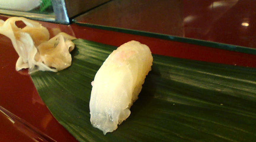 おまかせの一品目は天草産のクロウニでした。普通のウニと比べて味が濃厚です。 ![]() 続いてアラの握りです。梅塩で味が付けてあります。美味いっ!! ![]() 続いてタコの握り。何と「ゴマ塩七味唐辛子」が上に乗せてあります。これがまた美味しい! ![]() ここで汁物が出てきました。骨なしの鯛の身がタップリ入っていました。 ![]() 続いての握りはコハダの昆布締めです。私はあまり得意ではない魚ですが、美味しくいただきました。 ![]() この日一番美味しいと感じたのはコレ! 生サバの握りですが、新鮮さを考えるとランチまでとのこと。 ![]() 石鯛とイカ。石鯛はネギポン酢でねっとり、イカは藻塩ウニ入りです。 ![]() 写りが悪かったのでイカをアップにしてみました。ウニがたっぷり挟まっています。 ![]() もう一つ鯛の握りがありましたが、撮り忘れました。こちらは上記の天然車エビの握り。目茶うまです。 ![]() シマアジとカンパチ。この二つもとても美味しいです。最高!! ![]() 鯛のカマです。唯一今一だったのがこれ。マグロにしとけば良かった。これが★4つ半の理由です。 ![]() デザートです。シャーベットにイチジクが入っていますが、とても美味しかったです。 以上でしめて3,680円。質と量を考えると破格の安さです。また行きたいです。 ![]() |