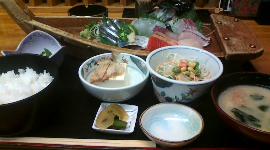 漁師割烹頼藤のメニュー。この日初めて訪れたということもあり、無難に刺身定食を注文しました。 ![]() 刺身がてんこ盛りに盛られた刺身定食。おかずが多いのでご飯をおかわりしてしまいました。 ![]() 刺身の拡大画像。1200円の定食にこれだけの刺身が出てくると言うのは凄いです。 ![]() |