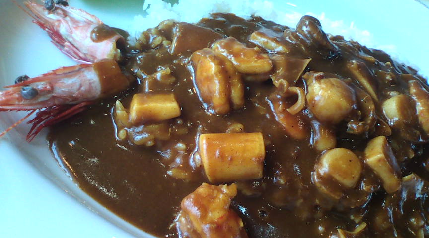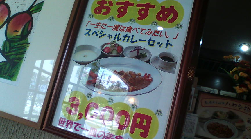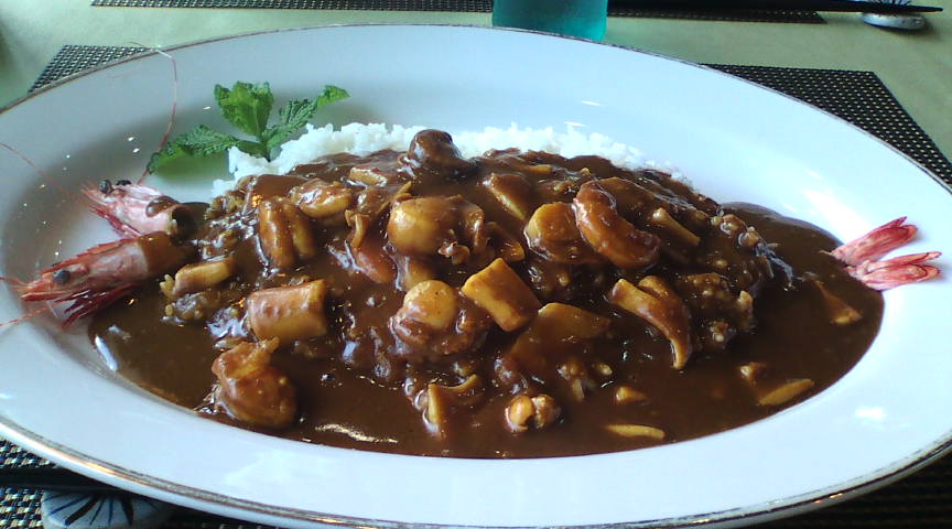 花の木のメニュー。何がお奨めか聞いてみたところ、ハンバーグ物語と3000円カレーと言われました。 ![]() 3000円カレーが店内に表示されていました。一生に一度は…という言葉に魅かれました。 ![]() 最初に出てきたのがポタージュスープ。なかなか美味しいです。 ![]() 野菜たっぷりのドレッシングをかけたサラダです。甘めのドレッシングが野菜の味にマッチしています。 ![]() いよいよ出てきた3000円カレー。シーフードがたっぷりと入っています。 ![]() 折角なので拡大してみました。一口目より二口目、三口目と美味しさが増してくる感じです。 ![]() デザートをメニューの中から選びます。どれも美味しそうです。 ![]() カラメルムースを選んでみました。甘すぎずラムの味が香ケーキは絶品です。 ![]() 締めのコーヒーです。コーヒーもとても美味しくいただきました。 ![]() |