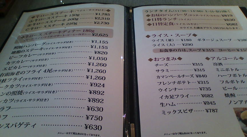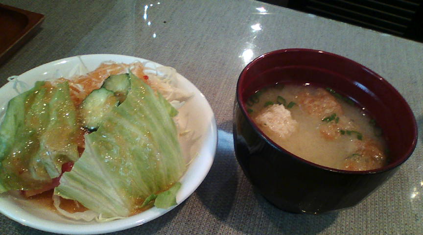 ら・ぺいざんのメニューその1 色々なバリエーションがあります。 ![]() さんざん迷いましたが、初めてということでお昼のハンバーグ(ライス大盛り)を注文しました。 ![]() ハンバーグの上にぺたっと乗ったケチャップですが、これが肉と良く絡みます。 ![]() 程なくライスも来たので一緒にパチリ。ちなみにライス大盛りは100円増しです。 ![]() 何故かメインよりも後に出てきたサラダとみそ汁。味は良かったです(コーヒーは付きません)。 ![]() |